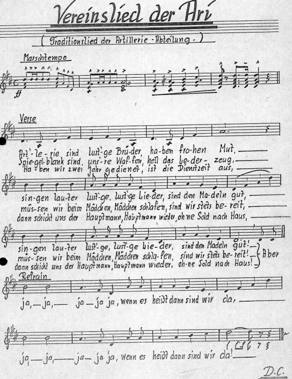 Vereinslied der Ari (Traditionslied der Artillerie-Abteilung) :
