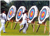 - lange Distanzen 90/70 m bzw 70/60 m : 6 Pfeile (1 Passe) = 4 min.
