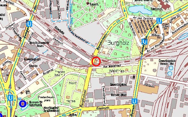 (ca. 8min. Fußweg Eisenstraße u. Burgholzstr.)
